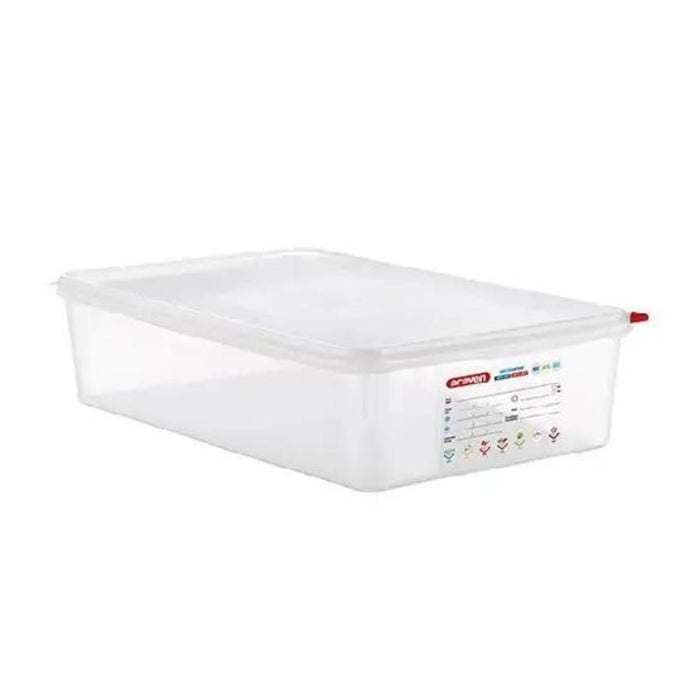 Preserve food longer with the Araven GN 1/1 Airtight Container. The new double airtight lip design enhances sealing, reducing oxidation and extending food life by up to 25%*. Easy-to-open lid with special tab and color clips for food management. Improved IML traceability label. Ideal for maximizing freshness and efficiency