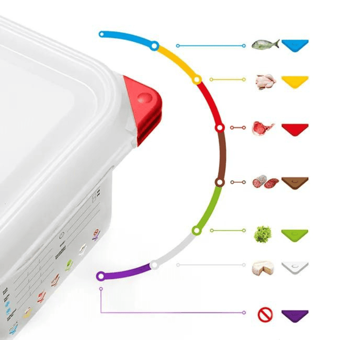 - Colour Coding:7 Colo clips for easy food management based on criteria like type of food, day of the week, and work area.