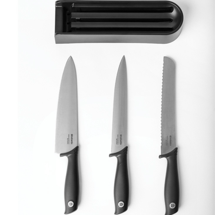 The Brabantia Tasty+ Drawer Knife Block is the perfect solution for keeping your knives neatly organized and easily accessible in your kitchen drawer. This set includes three essential knives designed for passionate chefs, featuring blades made from ice-hardened steel for long-lasting sharpness and durability.