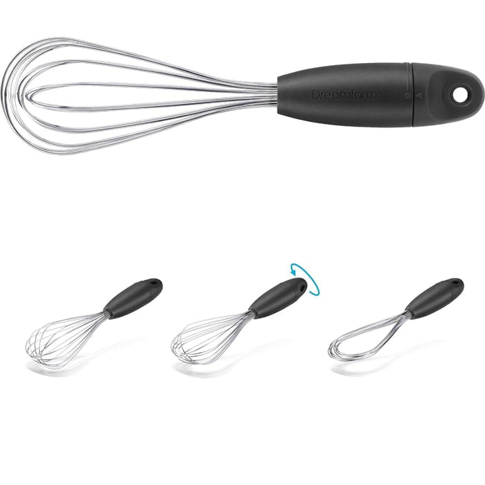 - Versatile Functionality: Transforms into three types of whisks with a simple twist—balloon whisk for whipping, sauce whisk for shallow liquids, and flat whisk for scrambling.
