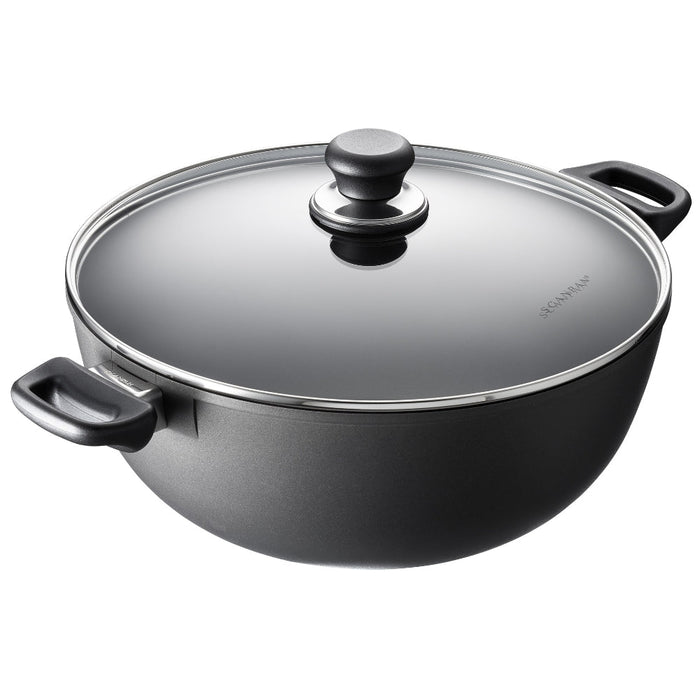 - Ergonomic Design: Features ergonomic handles that stay cool longer and a practical glass lid for monitoring food as it cooks.