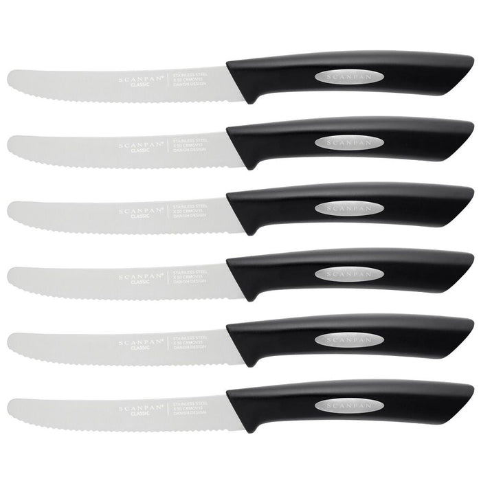 Elevate your dining experience with the New Classic Steak Knife Set from Scanpan. Designed with precision and elegance, this set is perfect for enjoying perfectly cooked steaks and other meats.